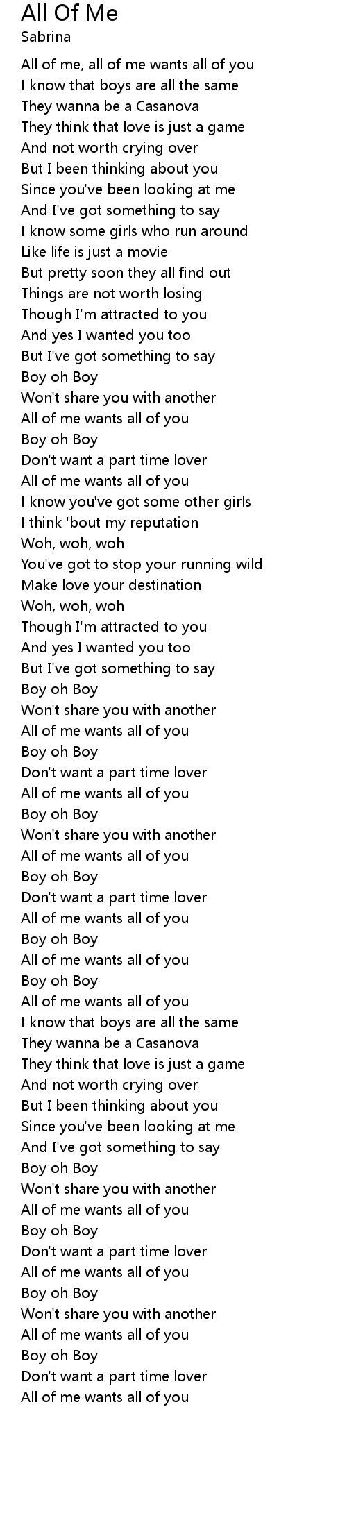 All of me, all of me wants all of you |