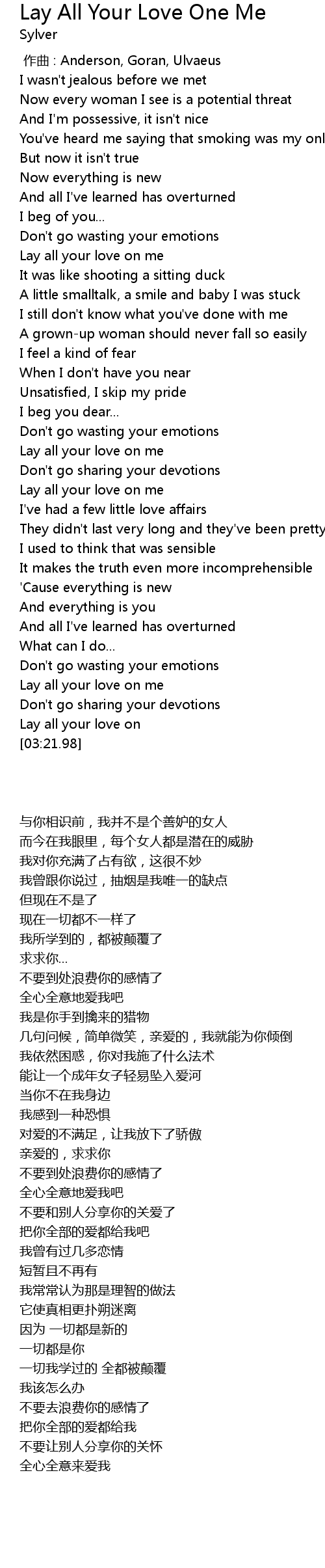 | [01:51.11] | Lay all your love on me |