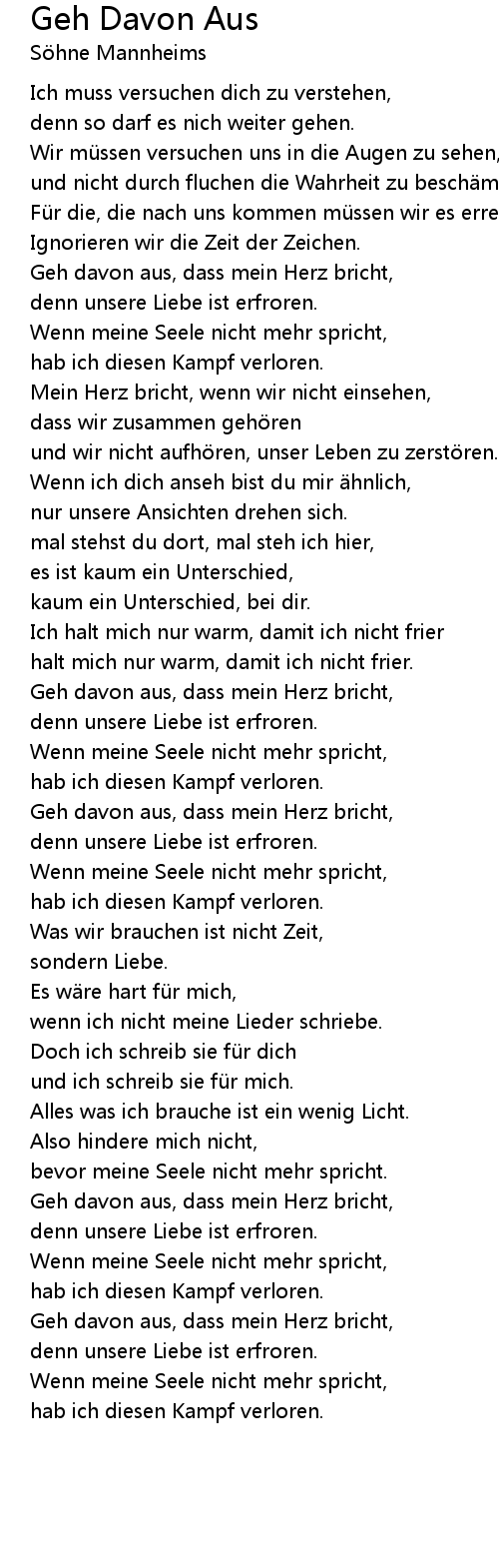| Mein Herz bricht, wenn wir nicht einsehen, | |