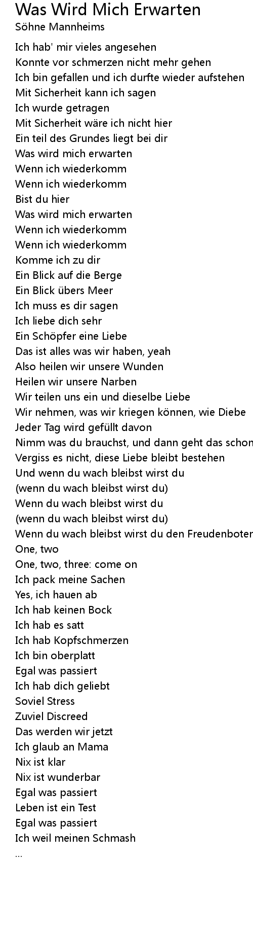 | Nimm was du brauchst, und dann geht das schon, yeah | |