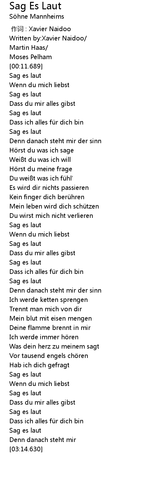 | [00:00.000] | zuò cí : Xavier Naidoo |
