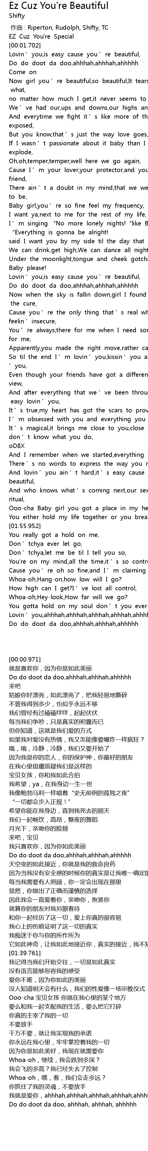 | [01:44.683] | And lovin ' you ain ' t hard, it ' s easy cause you ' re beautiful, |