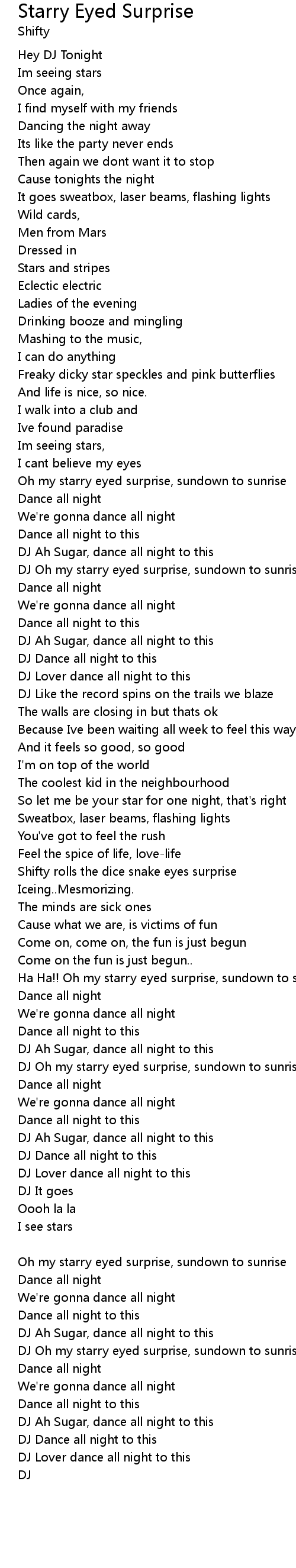 DJ Oh my starry eyed surprise, sundown to sunrise |