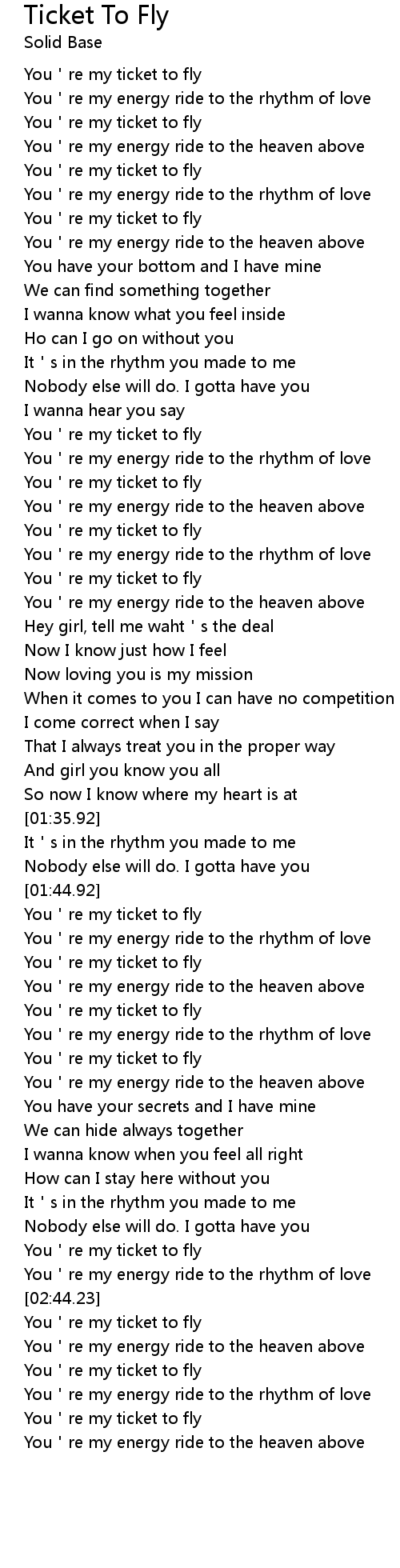 | [01:53.23] | You're my ticket to fly |