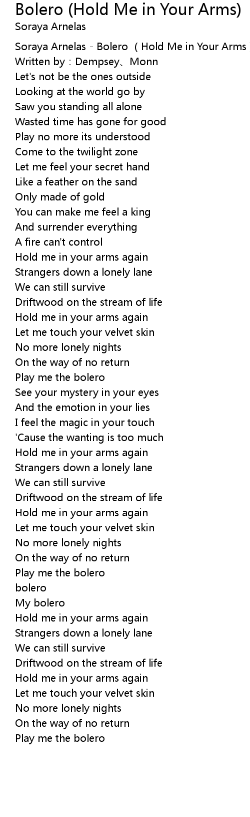 | [00:00.545] | Soraya Arnelas Bolero Hold Me in Your Arms |