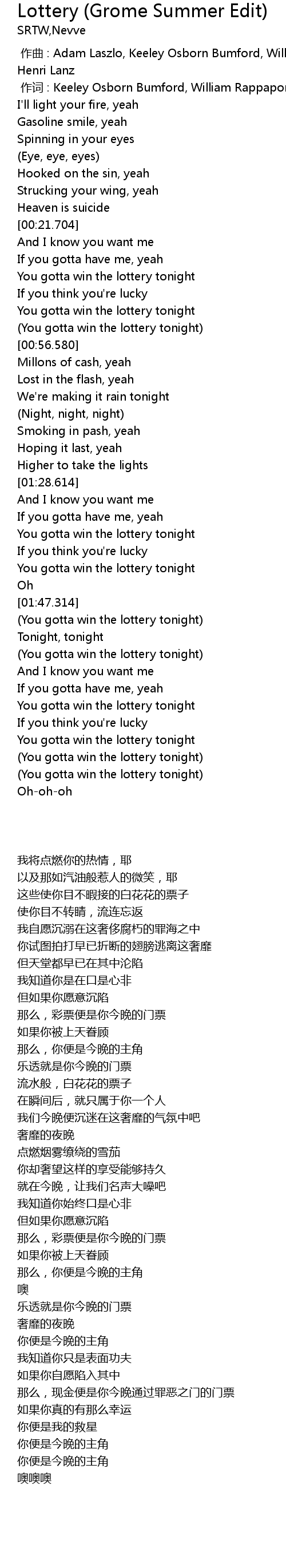 | [01:59.630] | (You gotta win the lottery tonight) |