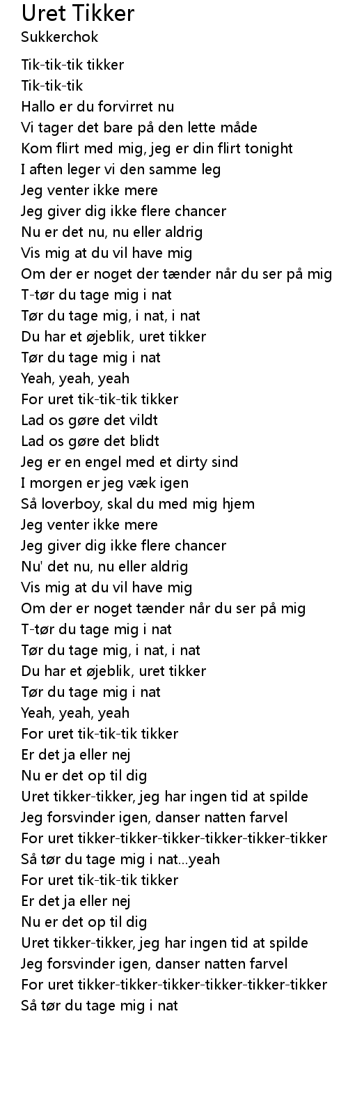 | Uret tikker-tikker, jeg har ingen tid at spilde | |