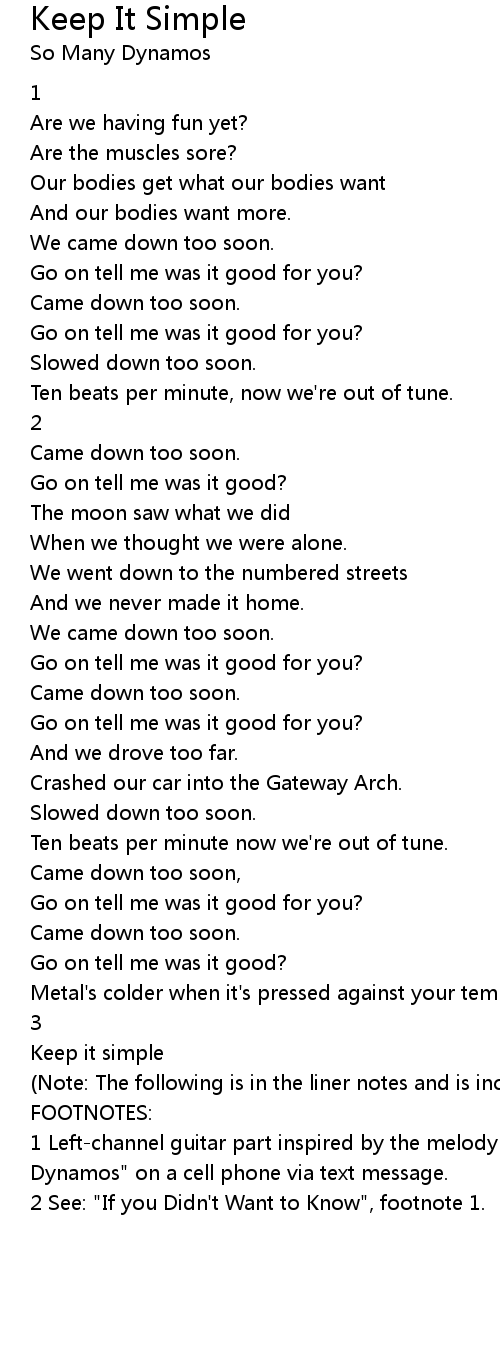 1 Left-channel guitar part inspired by the melody produced when typing "So Many Dynamos" on a cell phone via text message. |