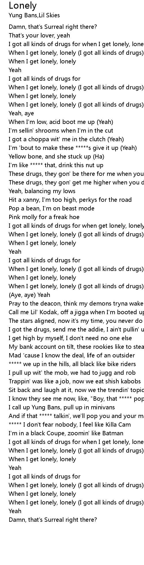 | [01:35.42] | When I get lonely, lonely (I got all kinds of drugs) |