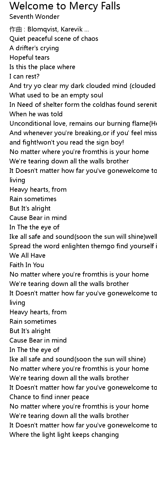 | It Doesn't matter how far you've gonewelcome to mercy fallsa | |