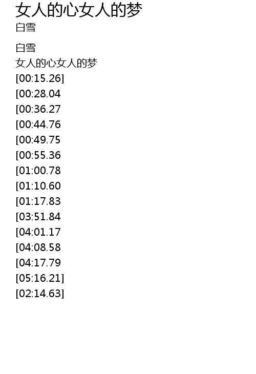 | [03:40.91][01:17.83] | 为什么女人追求不到那场完整的梦 |