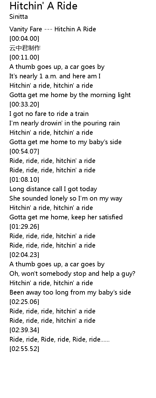 | [02:27.91] | Ride, ride, ride, hitchin' a ride |