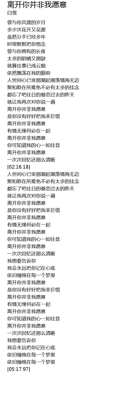 | [04:18.36] | li kai ni bing fei wo yuan yi |