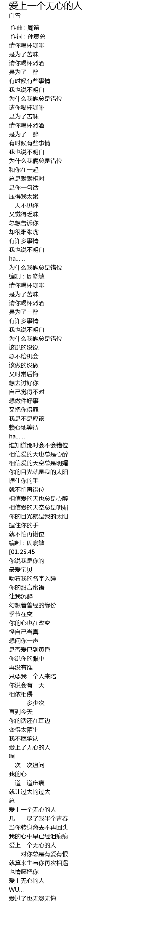 | [02:25.50] | 爱上一个无心的人 |