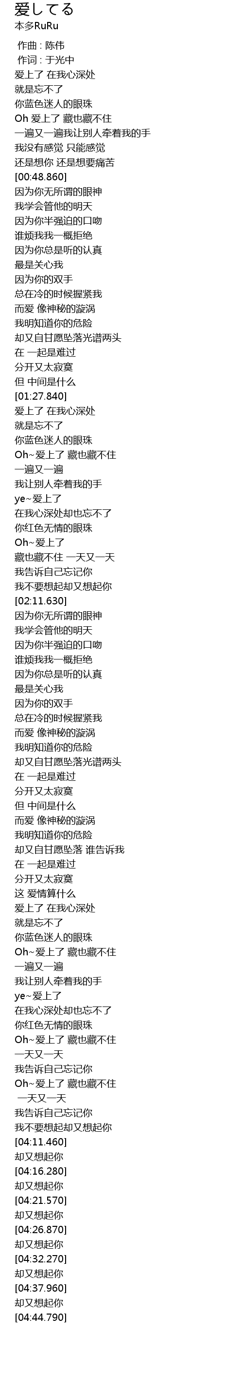 | [01:48.900] | ye~爱上了 |