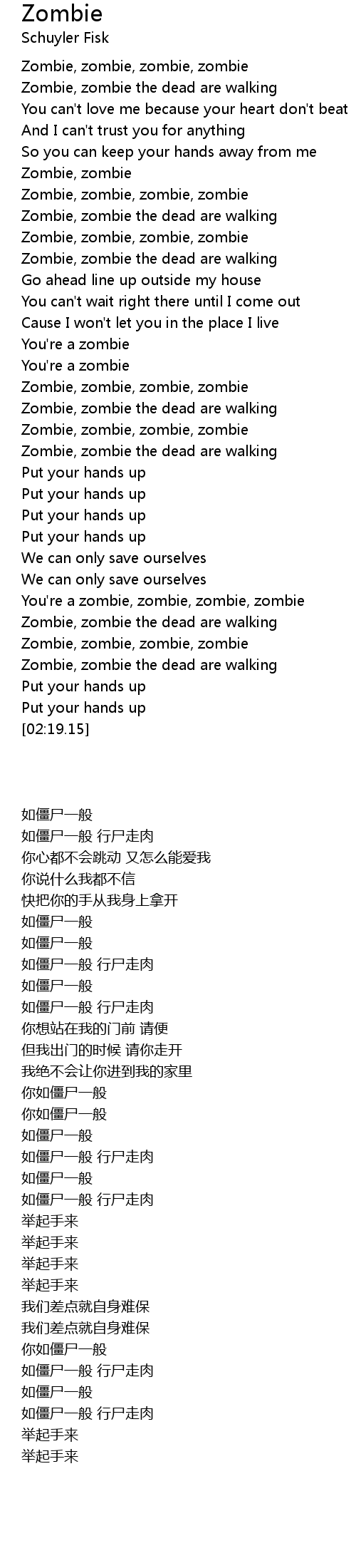 Zombie, zombie the dead are walking |