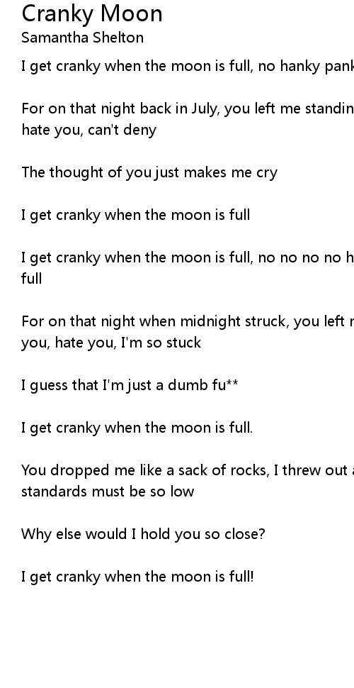 I get cranky when the moon is full, no no no no hanky panky when the moon is full