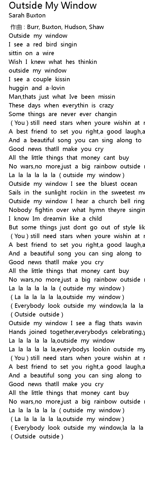 | [02:55.20] | (Everybody look outside my window,la la la la la la) |