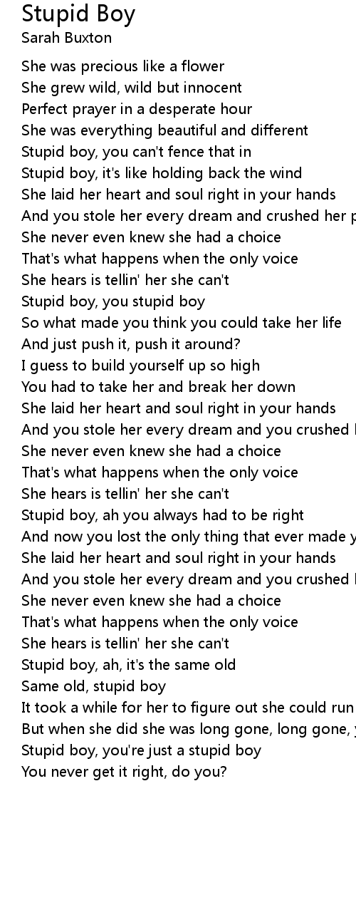 Stupid boy, you stupid boy |