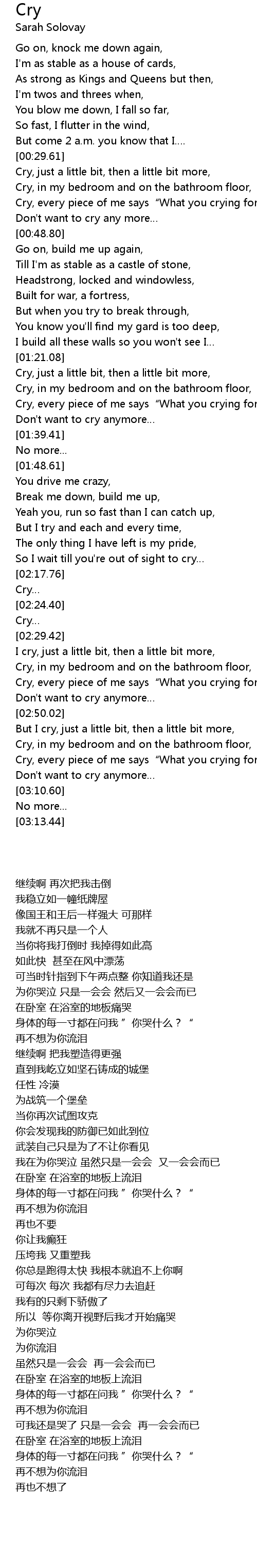 | [03:02.79] | Cry, every piece of me says" What you crying for?" |