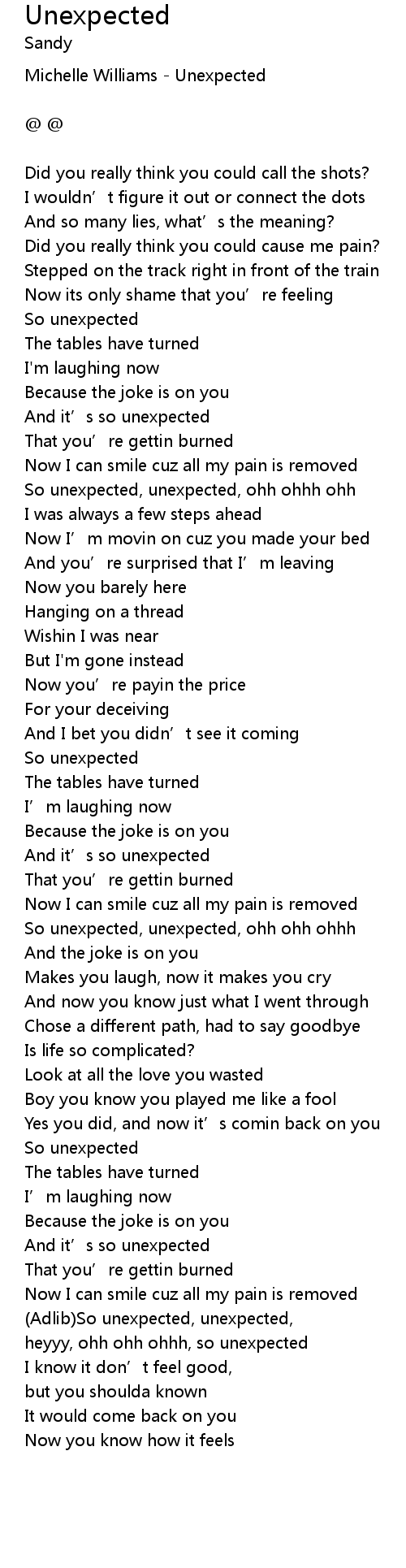 | So unexpected, unexpected, ohh ohh ohhh | |