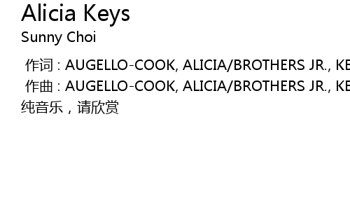 | [00:00.000] | 作词 : AUGELLO-COOK, ALICIA/BROTHERS JR., KER |