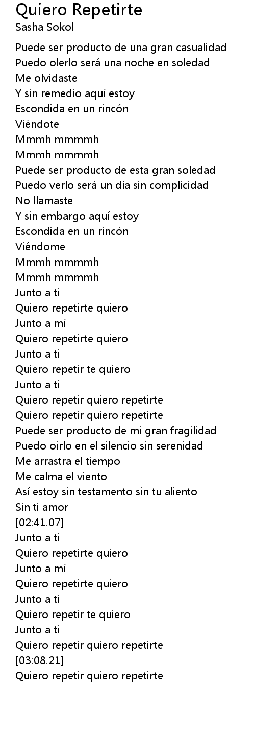| [03:05.27] | Quiero repetir quiero repetirte |