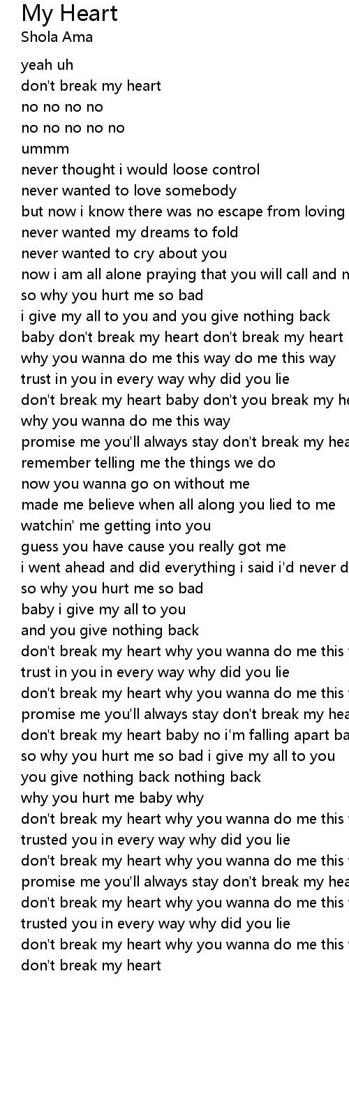 | don't break my heart why you wanna do me this way promise me you'll always stay | |