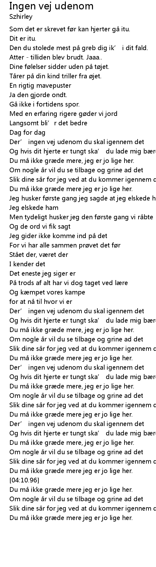 | [04:29.72] | Slik dine s r for jeg ved at du kommer igennem det |