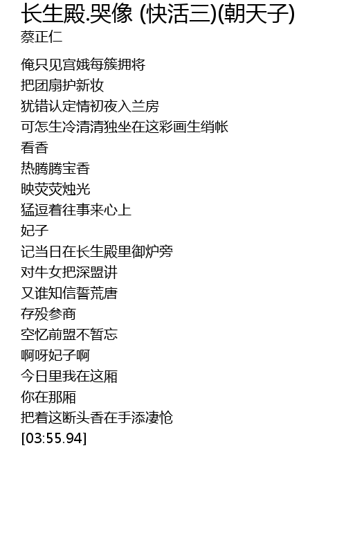 | [02:15.00] | 记当日在长生殿里御炉旁 |