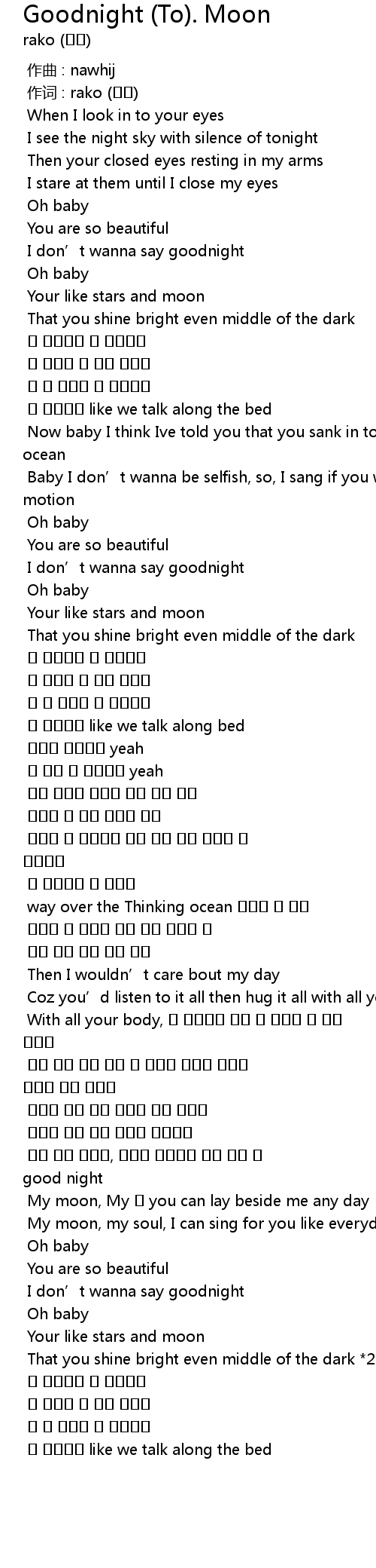 | [03:08.983] | My moon, My you can lay beside me any day |