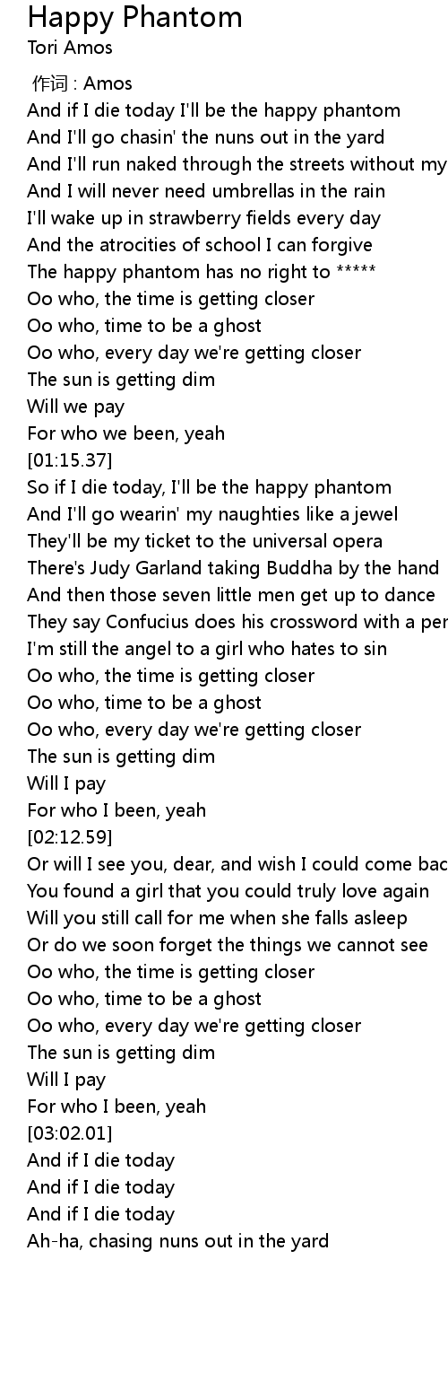 | [00:26.68] | And if I die today I'll be the happy phantom |
