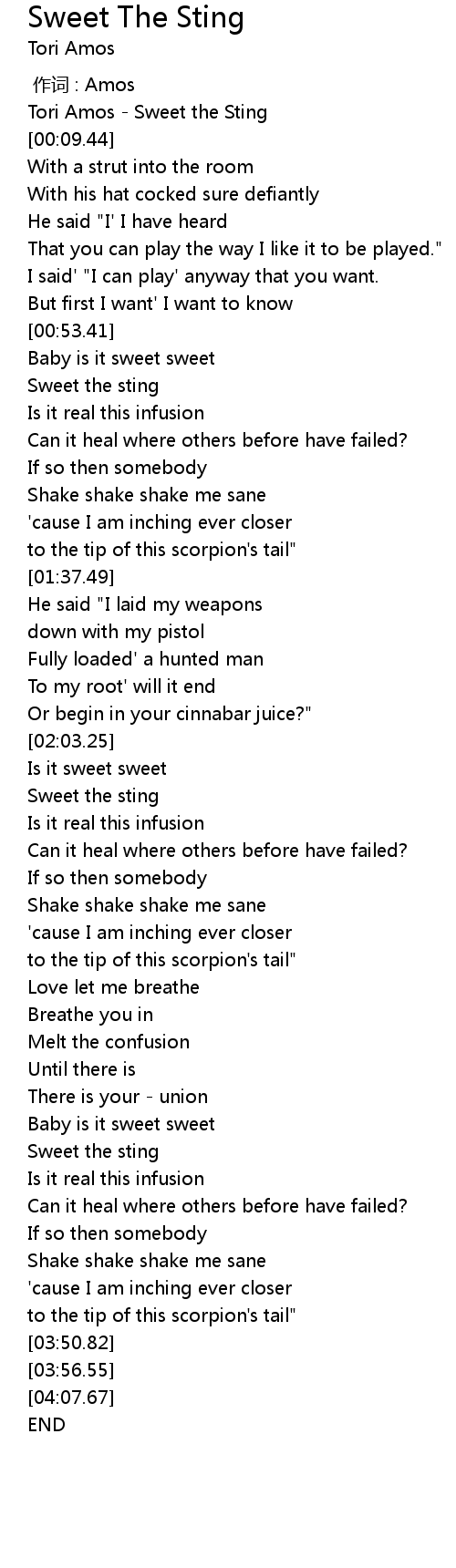 | [00:00.00] | Tori Amos - Sweet the Sting |