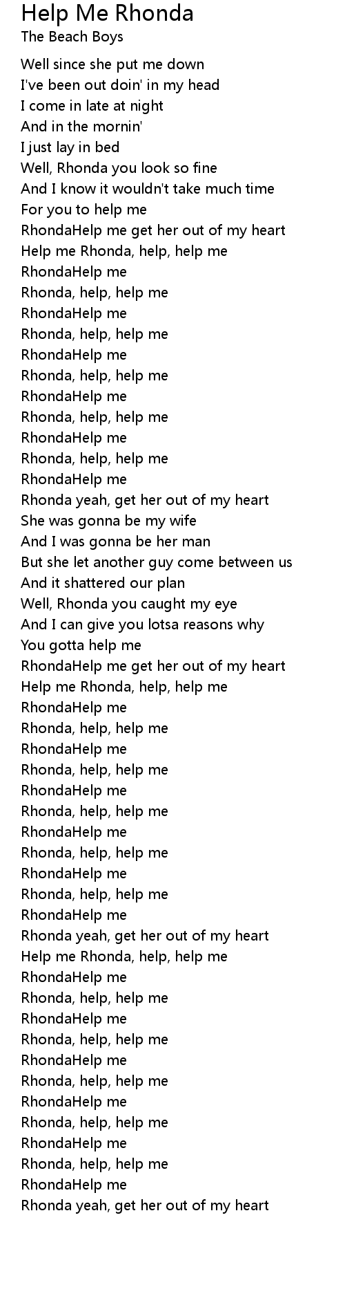 Help me Rhonda, help, help me |