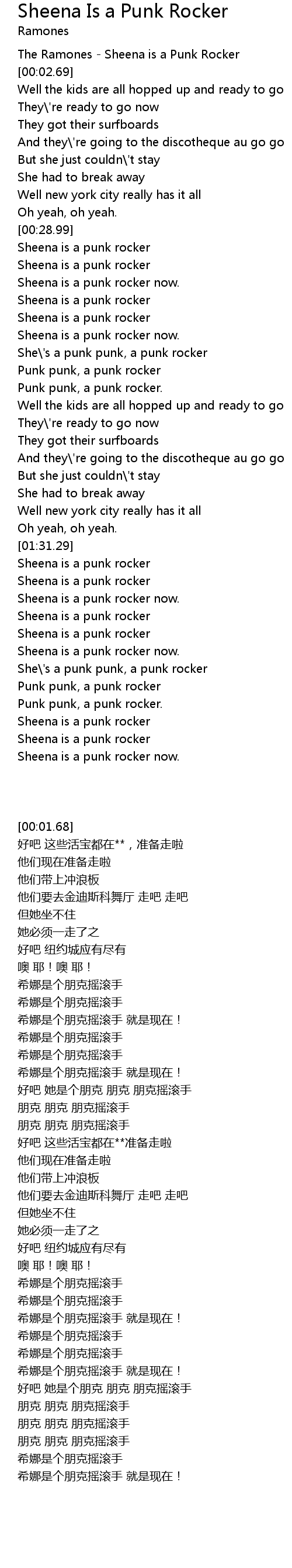 Sheena is a punk rocker |