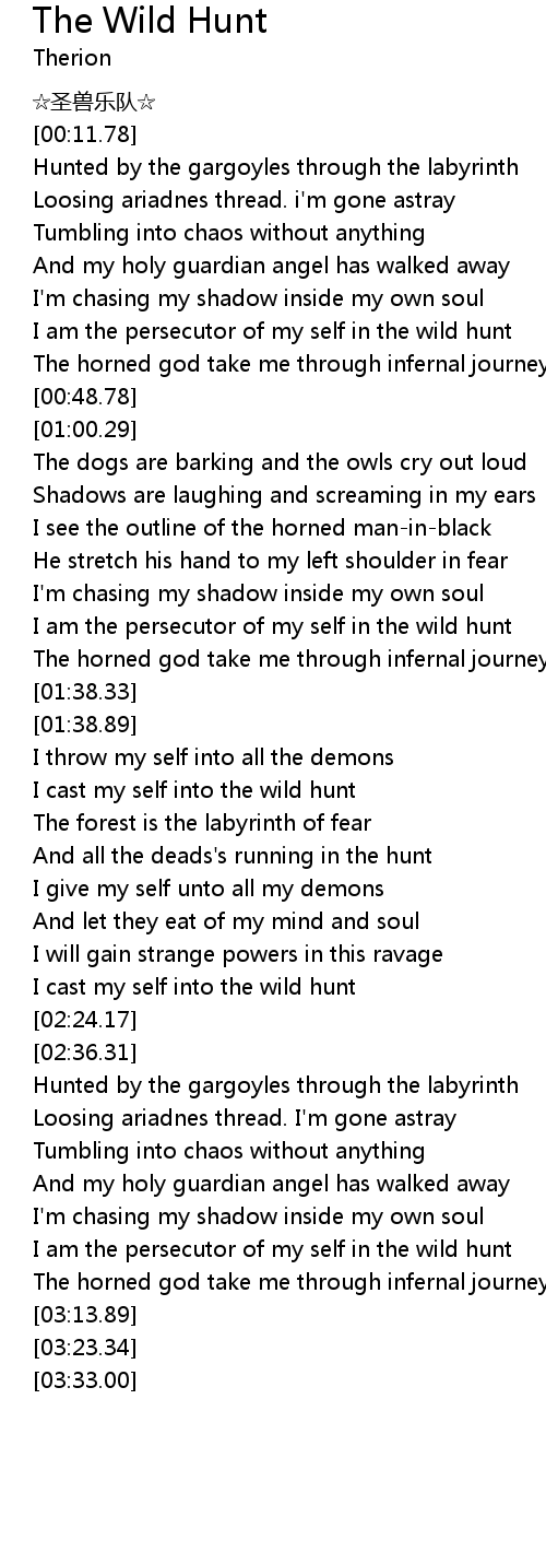 | [03:03.17] | I am the persecutor of my self in the wild hunt |