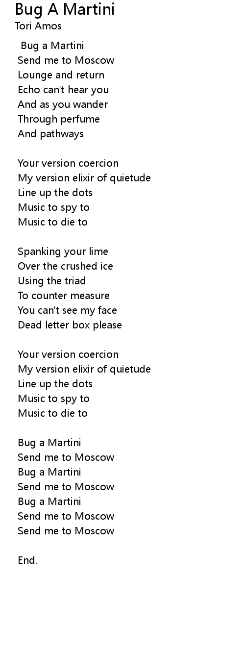 | Song | Bug A Martini |