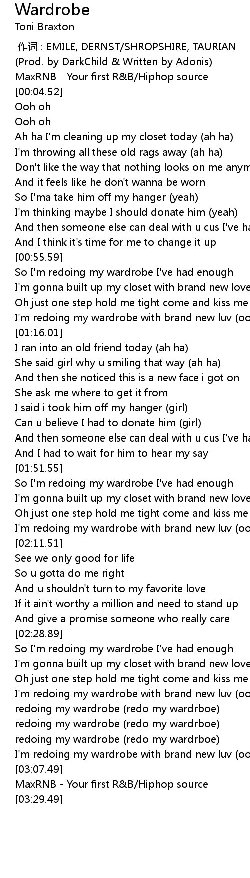 | [02:53.38] | redoing my wardrobe (redo my wardrboe) |