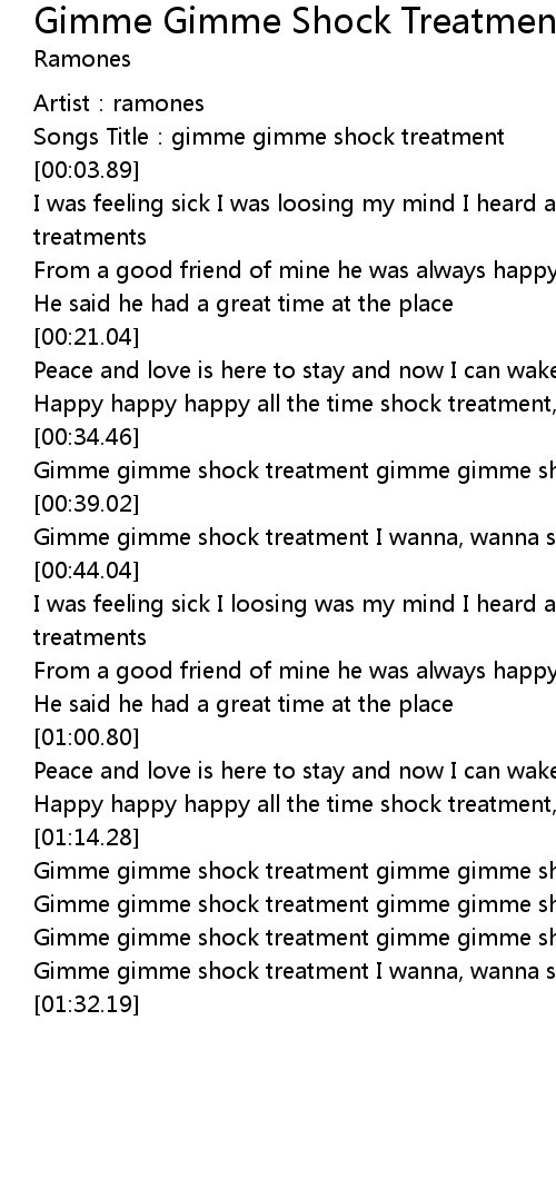 | [00:02.17] | Songs Title: gimme gimme shock treatment |