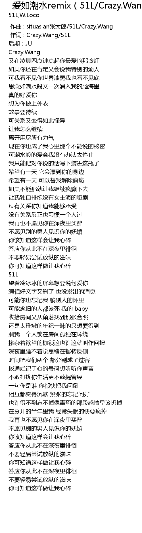 | [00:01.000] | 作词 : Crazy.Wang/51L |