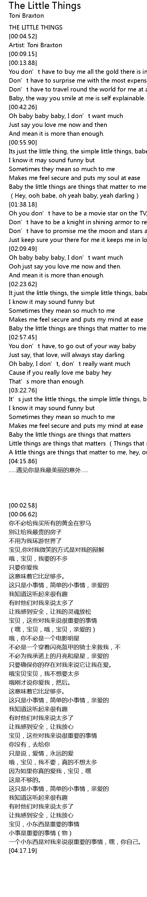 | [03:53.56] | Little things are things that matters (Things that matter) |