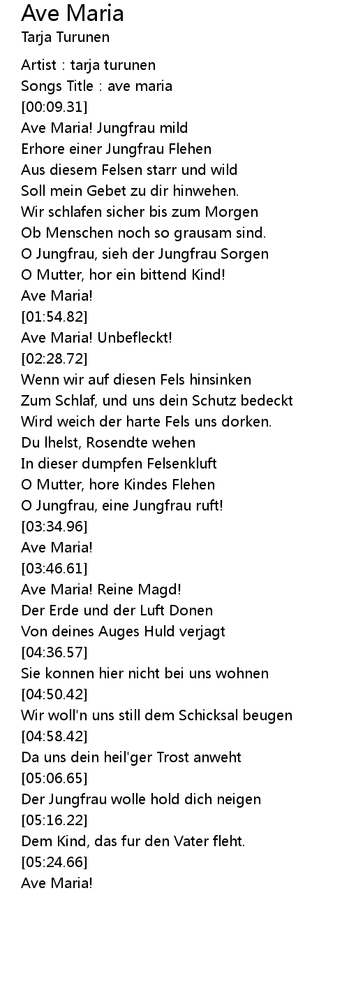 | [02:09.62] | Ave Maria! Unbefleckt! |