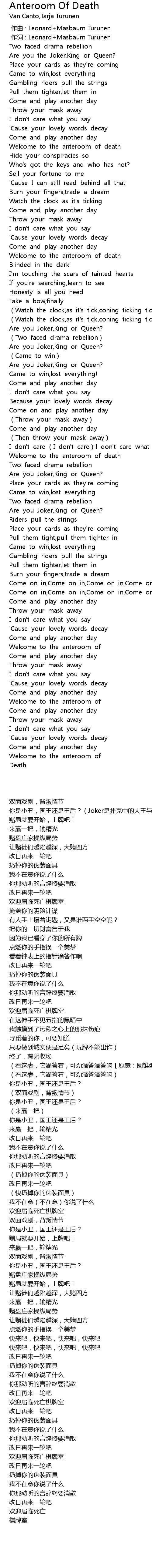 | [03:01.27] | Are you Joker, King or Queen? |