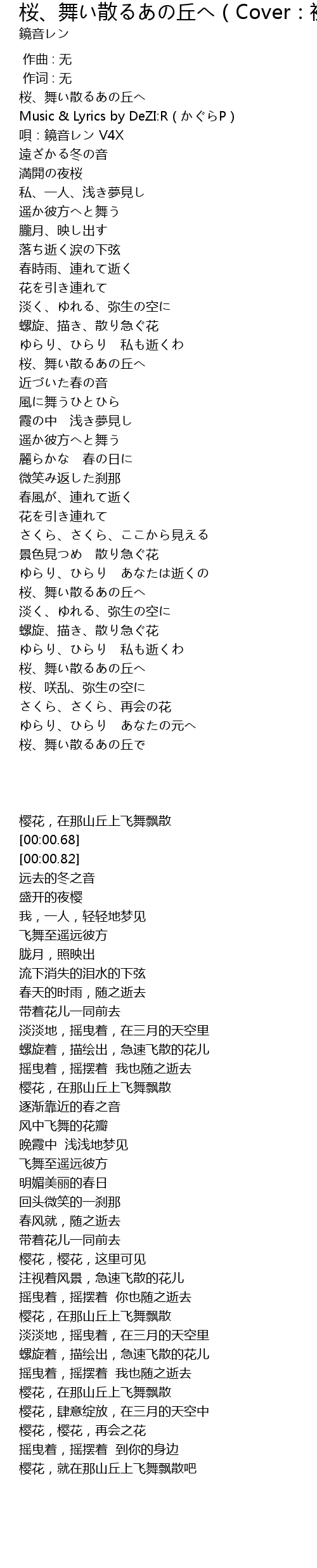 | [01:08.95] | 桜、舞い散るあの丘へ |