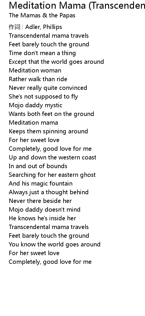 | Song | Meditation Mama (Transcendental Woman Travels) |