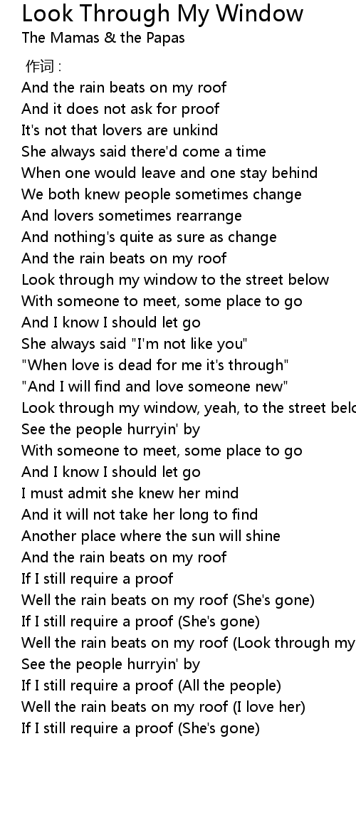 | Song | Look Through My Window |