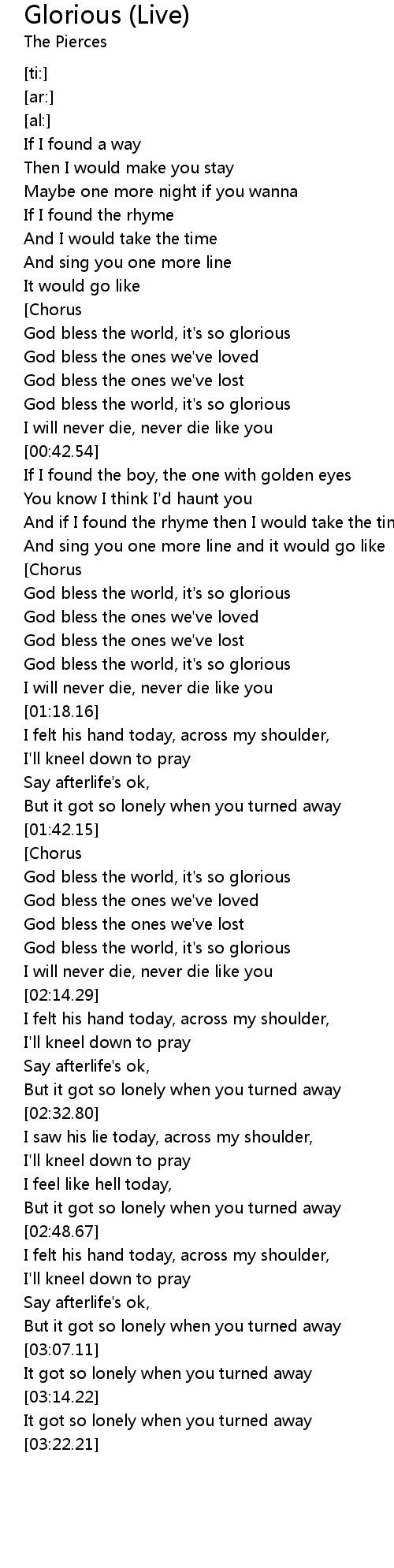 God bless the world, it's so glorious |