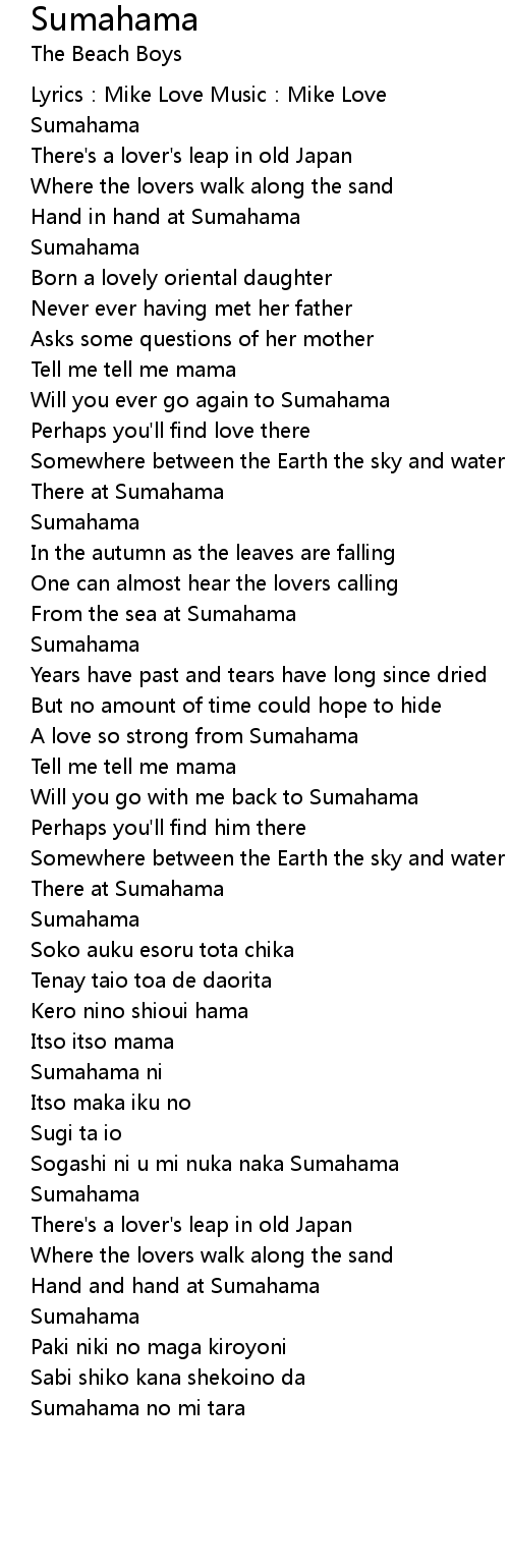 | Lyrics: Mike Love Music: Mike Love | |
