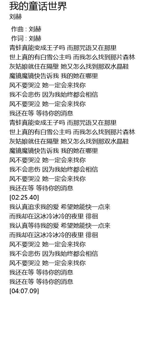 | [00:25.68] | 世上真的有白雪公主吗 而我怎么找到那片森林 |