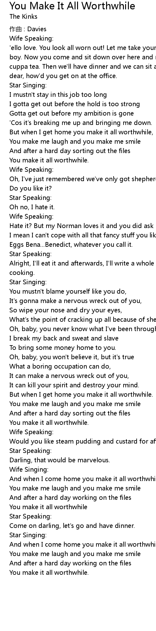 | But when I get home you make it all worthwhile. | |